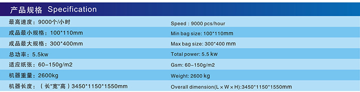 WF200A型自動信封紙袋機作為系列產品的重要規格之一,主要用于加工大、中型信封,在完成信封的同時,在信封的封口貼上離型紙。WF200A型自動信封紙袋機具有生產效率高,性能穩定,調整操作快捷方便,結構緊湊,占地面積小等優點。本機型的設計還特別考慮了厚紙加工的需要。氣吸式紙堆底部給紙機構分紙可靠,并可不停機續紙。配有吸氣滾筒的柵欄定位折疊機構高速穩定,折疊準確。可不停機調整信封(紙袋)的寬度,輪轉施膠機構可保證膠量均勻,清洗方便,配有成品計數分組機構。